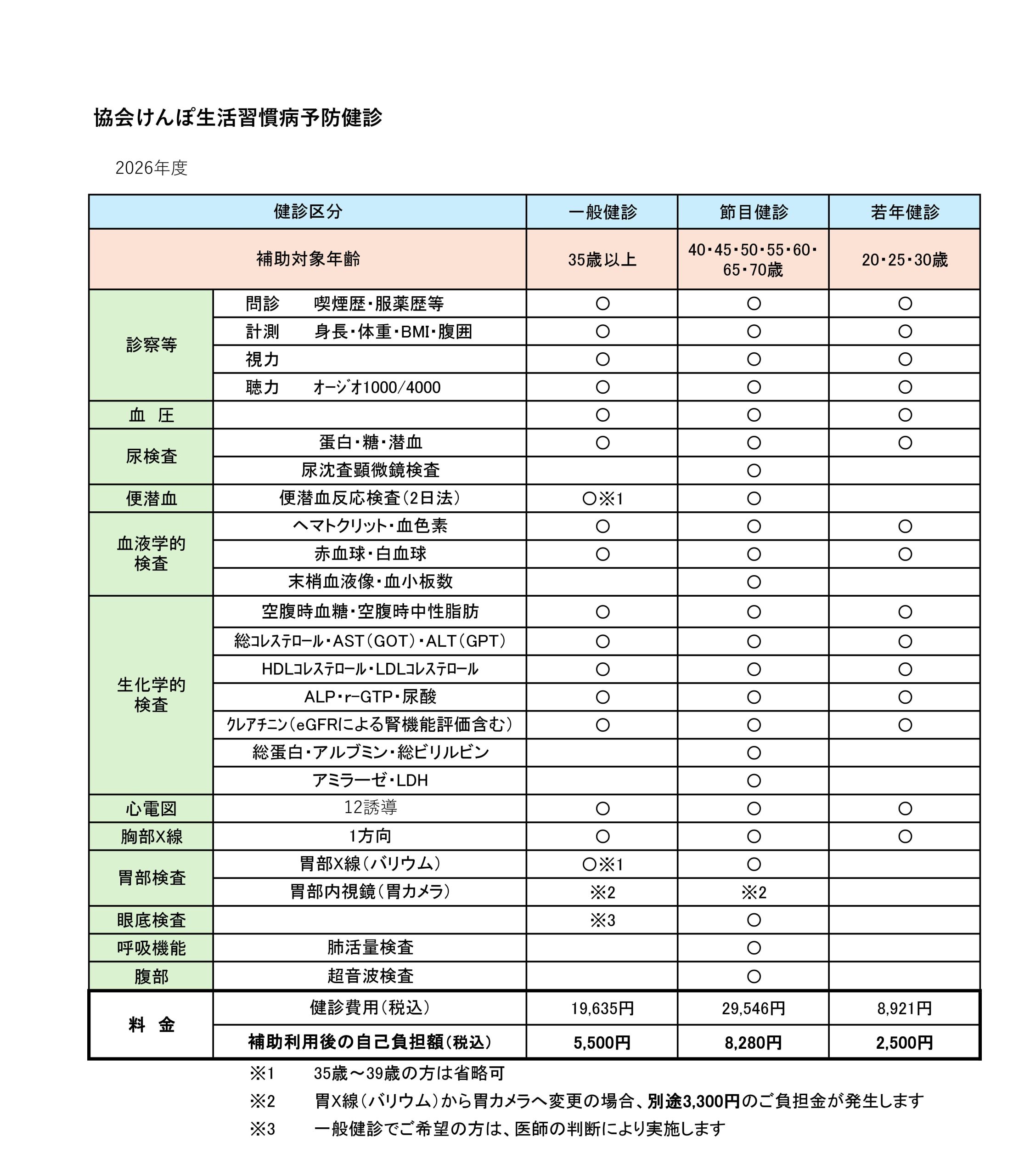 (※昨年度の健診結果に基づき医師の判断により実施されます)